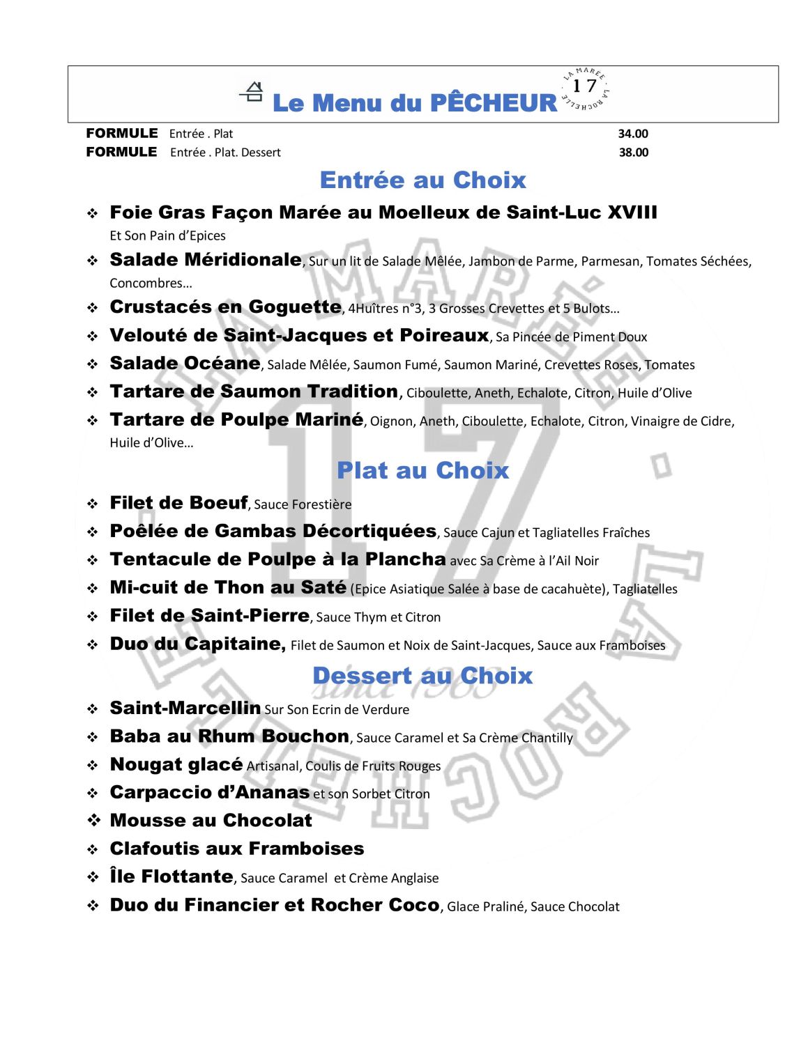 Vous retrouverez ainsi tous les arômes maritimes de La Rochelle qui vous enivreront à travers nos Poissons, nos Mollusques et nos Crustacés servis dans la pure tradition d'un authentique Bistrot de la Mer.