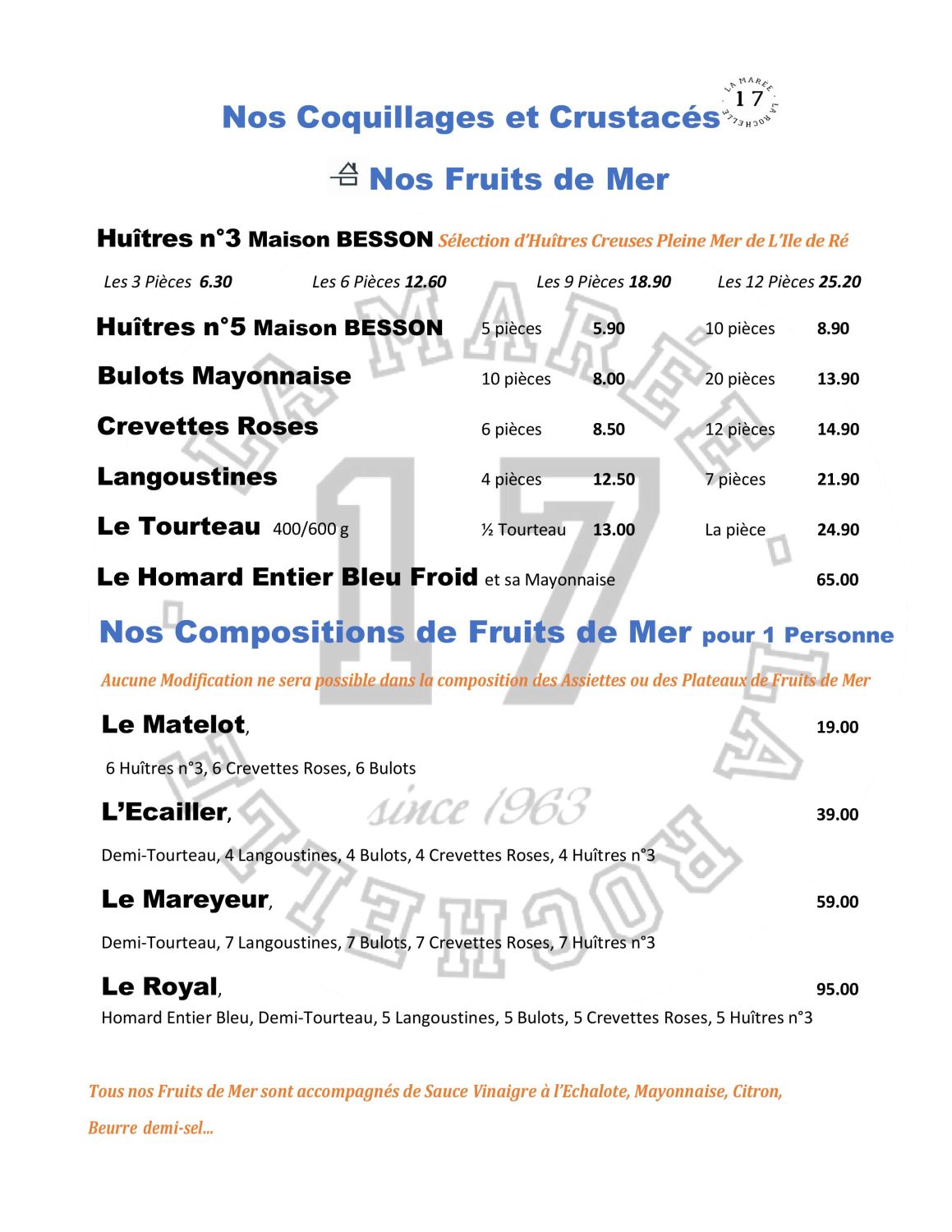 Vous retrouverez ainsi tous les arômes maritimes de La Rochelle qui vous enivreront à travers nos Poissons, nos Mollusques et nos Crustacés servis dans la pure tradition d'un authentique Bistrot de la Mer.